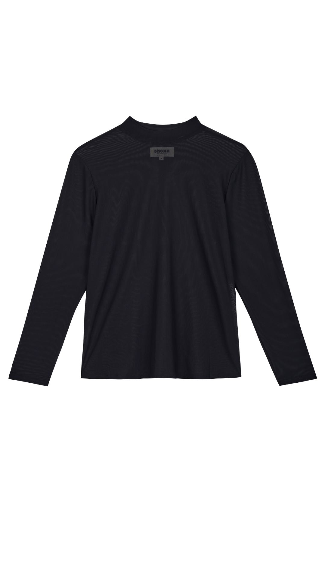 DISCOLA® Mesh Celes Top – Black Semi-Mock Neck